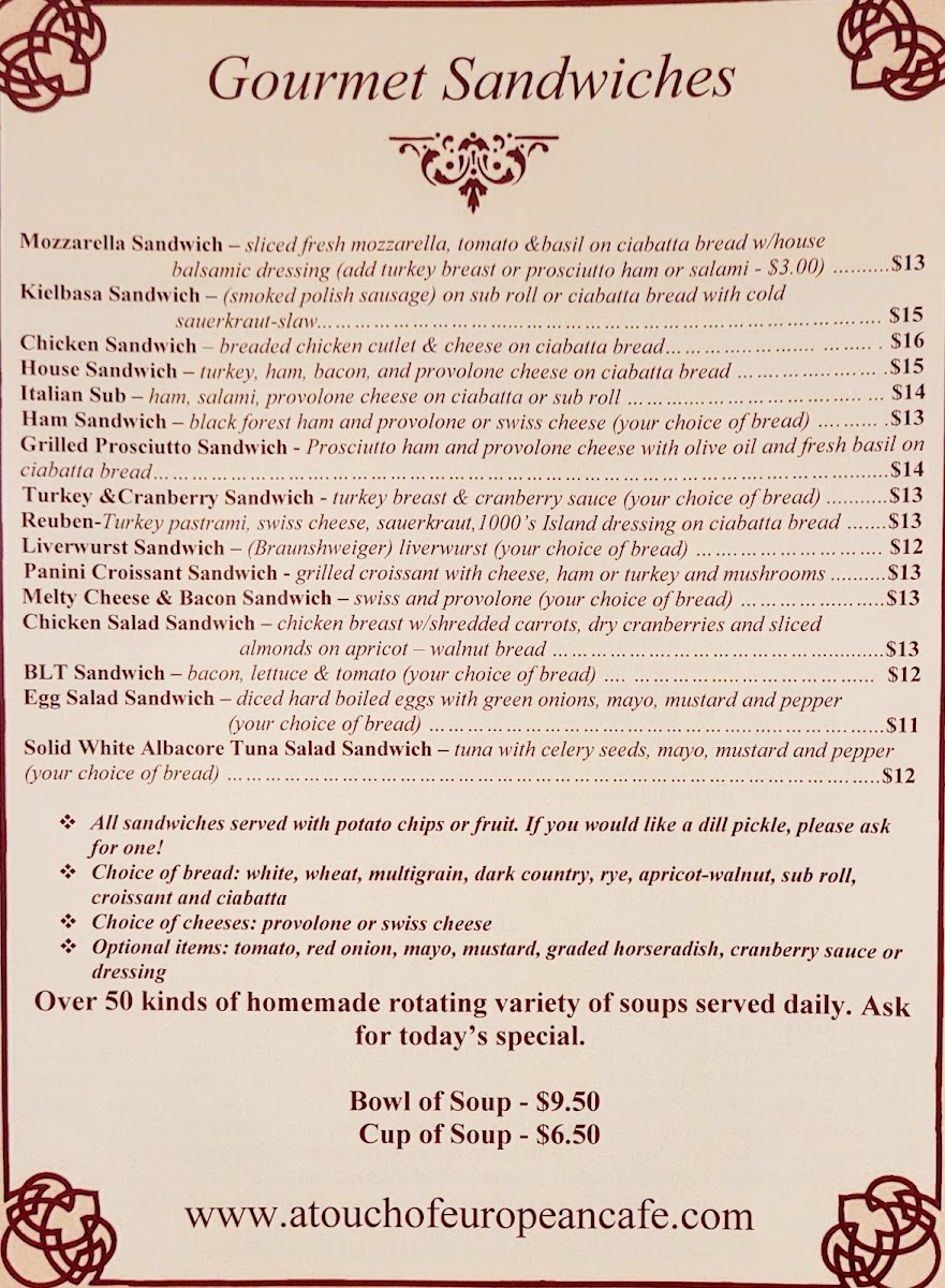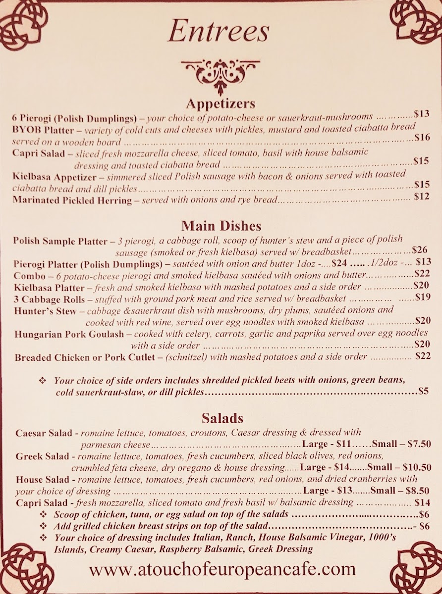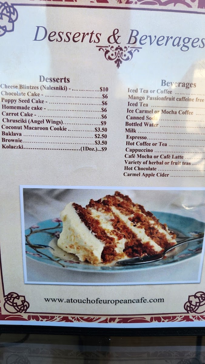 A Touch of European Café Menu